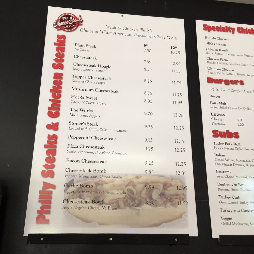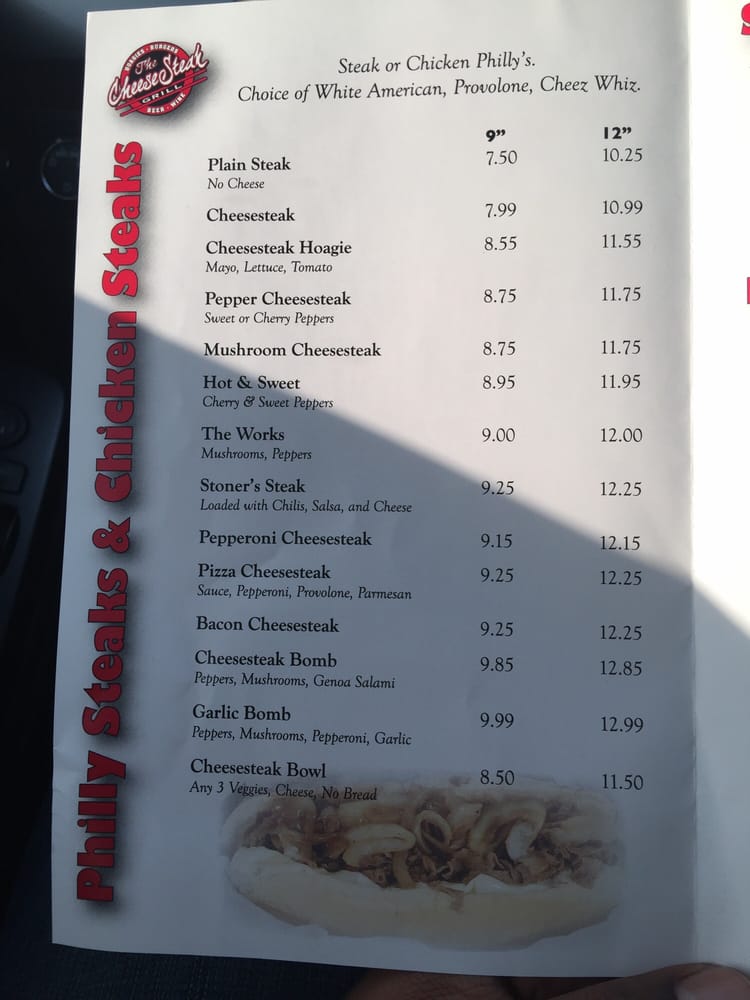 The Cheesesteak Grill in Oceanside, CA offers a mouthwatering selection of cheesesteaks, sandwiches, and burgers. With a wide range of options to choose from, including plain cheesesteaks, hot & sweet variations, and unique creations like the garlic bomb or pizza pepperoni cheesesteak. The menu also features delicious chicken options and deli sandwiches, such as the Italian hoagie and turkey hoagie. Customers rave about the quality of the food, with reviews praising the flavor and authenticity of the Philly cheesesteak. The casual atmosphere, excellent customer service, and sports on TV make it a perfect spot for a quick lunch or a laid-back dinner. If you're a fan of cheesesteaks, The Cheesesteak Grill is a must-visit destination on the West Coast.
